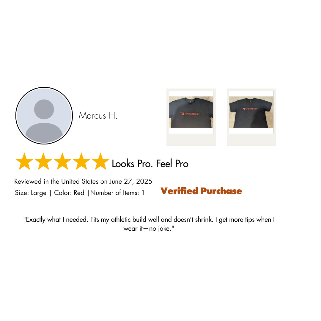 We offer apparel for DoorDash, Uber Eats, Grubhub, Instacart, Gopuff, Postmates, Walmart Spark, Amazon Fresh and more to come. All designs are niche-focused for delivery drivers.